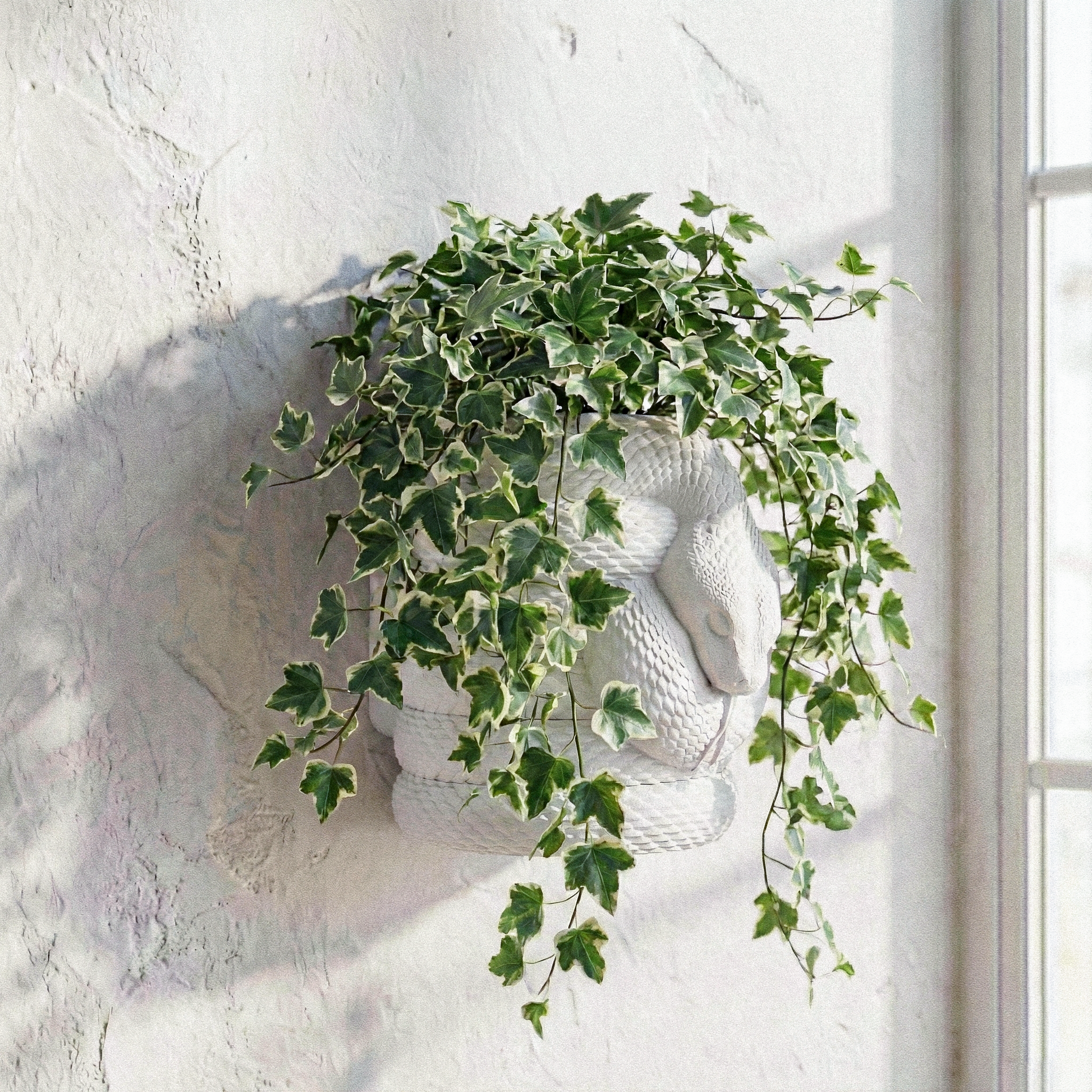 Vaso da muro raffigurante vipera, con sottovaso integrato con blocco di sicurezza, ideale per piantare piante direttamente senza utilizzo di ulteriori vasi, realizzato in PLA (Polilattico Biodegradabile Riciclato).